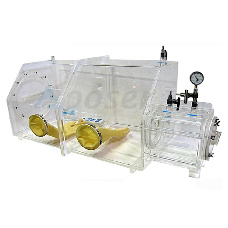 1. Bench top clear glove box offers larger inert gas environment working space with vacuum gas cabinet and side door.